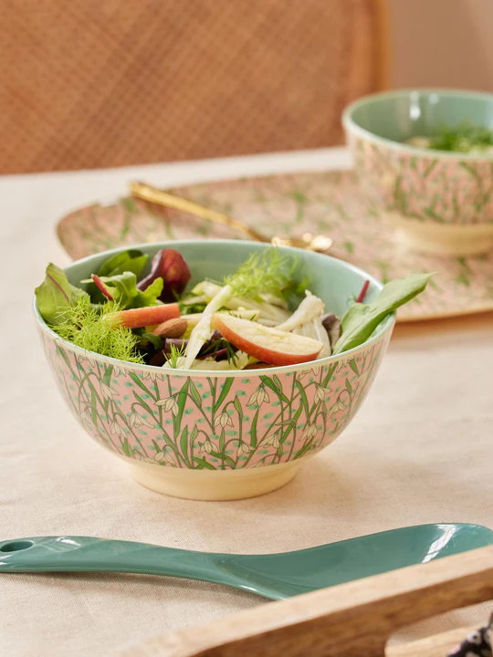 Très joli bol en mélamine, taille médium, dans le joli imprimé « New Snowdrop ». La mélamine est un matériau durable et idéal pour un usage quotidien pour les enfants comme pour les adultes grâce à sa solidité et à sa facilité de nettoyage. Elle ne s’imprègne pas des odeurs ou des couleurs des aliments. Veuillez noter que cet article ne convient pas pour un usage au micro-ondes.