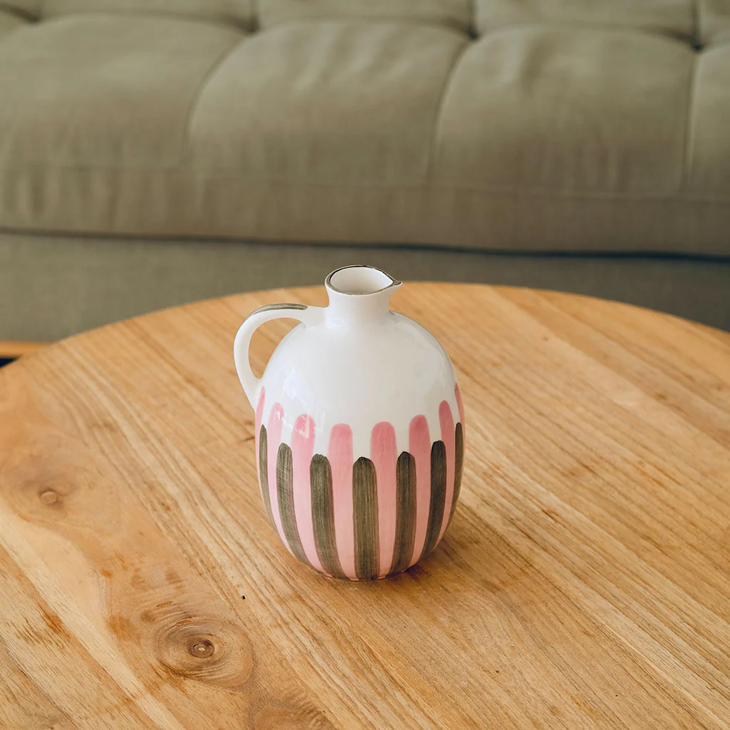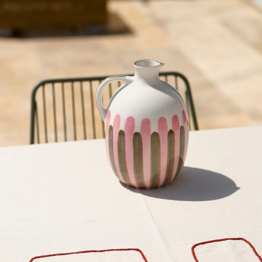 Pichet céramique – rayé vert et rose