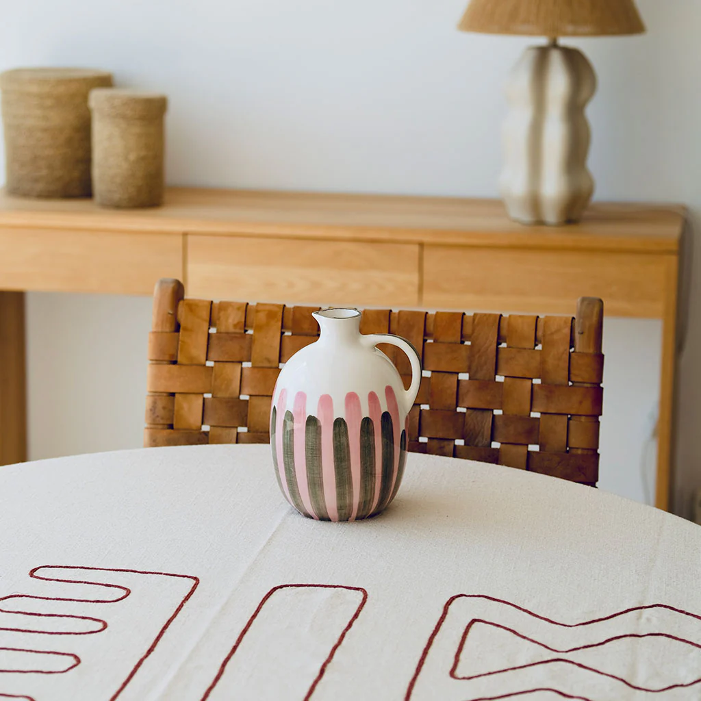 Le pichet en céramique est notre indispensable du quotidien : idéal pour servir de l’eau, préparer vos citronnades et thés glacés. Ce nouveau format, plus rond, amène de la douceur tout en gardant une touche d’originalité avec ses rayures rosées et terracotta.